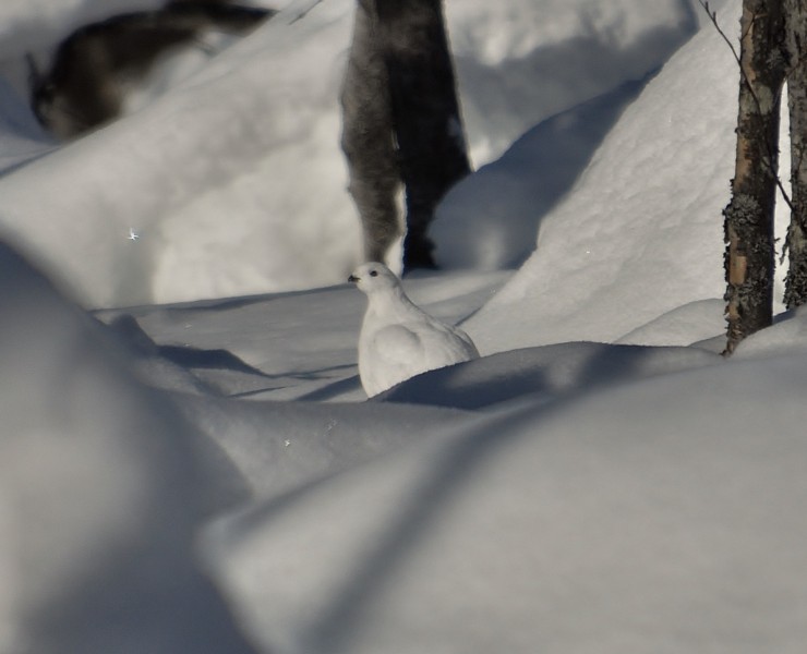 Pour finir la balade, nous sommes revenus par le lac. Le lac gelé est aménagé en pistes pour l’hiver. Toutes les activités y cohabitent : ski de fond, motoneige, chien de traineau, marche, trou d’eau froide pour le sauna !
