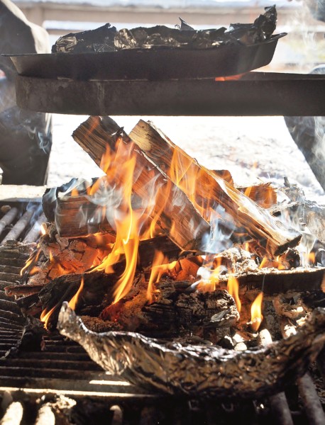 On retrouve là-haut un lieu pour faire le feu. Comme toujours en Finlande, du bois et une hache sont disponibles pour allumer le feu. Il faut juste penser aux allumettes ! et aux saucisses à faire cuire !! Nous avons fait la totale : saucisses, fromage qui couine (typiquement finlandais !), banane au chocolat ! Mmmmmh .