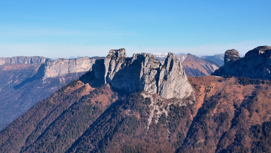 Cet ensemble se trouve au dessus du lac d’Annecy. J’ai souvent randonné au pied, ou à proximité avec les dents de Lanfon en ligne de mire. Leur traversée n’est pas évidente et demande de mettre une corde. Mais un jour je la ferai !