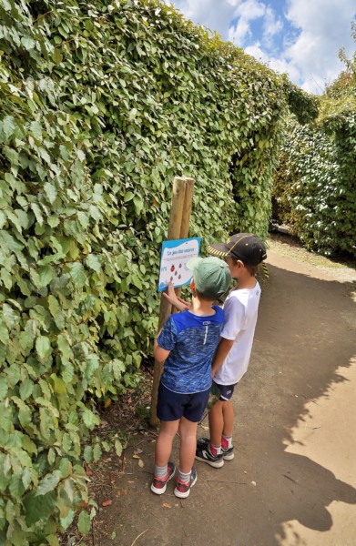 Le grand attrait des lieux est le labyrinthe géant. Mais les jeux se défendent pas mal … Selon l’âge, les enfants ne peuvent pas tout faire, et j’ia trouvé que pour les moins de 4 ans il n’y avait pas tant de jeux que ça. Les garçons se sont éclatés en tout cas ! Parcours aérien, toboggan bouée, jeux gonflables, karting/vélo, trampoline… De quoi bien s’amuser ! Quant au labyrinthe c’est un vrai labyrinthe !! On s’y perd presque pour de vrai :- ) Des parcours sont aménagés avec des indices à trouver selon l’âge des enfants. C’est bien fait et bien paumatoire !!