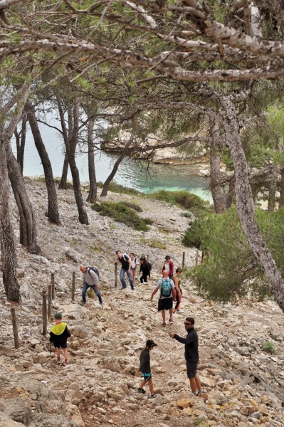 Il est ensuite nécessaire de marcher pour rejoindre le fond de la calanque de Port Miou. Elle abrite un port de plaisance. Le début de la balade longe ce port, avant de s’élever pour réussir la bascule vers la calanque suivante : Port Pin.