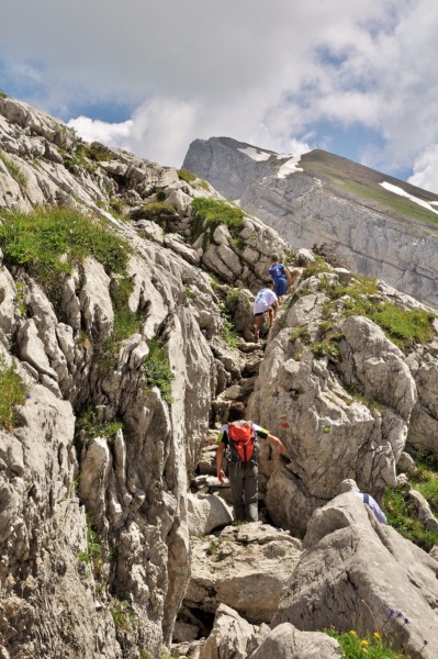 On grimpe à travers les lapiaz jusqu’au refuge pour un repos bien mérité !