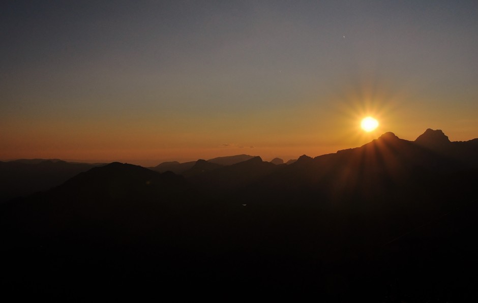 Pour clôturer cela, admirer le magnifique coucher de soleil sur le massif du Bargy et notamment le pic du Jallouvre …