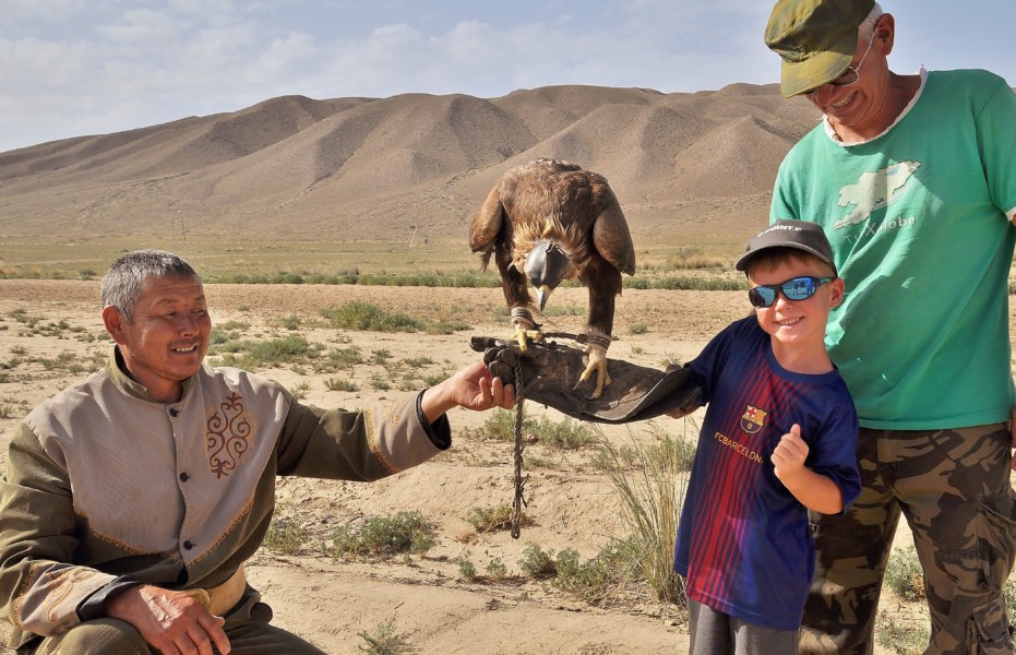 En parlant d’aigle, à bokonbayevo, vous pouvez rencontrer un chasseur à l’aigle royal. Vous pouvez faire la rencontre avec les photos, ou la chasse où un lapin est sacrifié. Nous avons choisi la deuxième, car les garçons sont habitués à voir des scènes de chasse des animaux (nous avons vu tous les National Geographic …). C’est une belle occasion de voir une telle chasse dont nous choisissons de profiter. A savoir, qu’un aigle mange en été environ l’équivalent d’un lapin par jour (donc de toute façon, il sera mangé que ce soit devant nous ou pas…) .