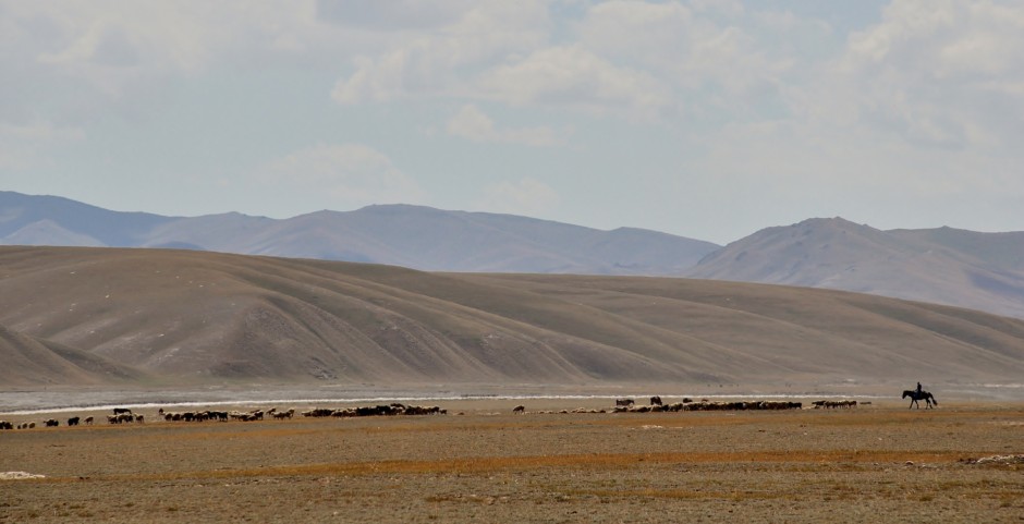 Au réveil, pour ne pas réveiller tout le monde, on s’éloigne pour aller admirer les troupeaux un peu plus loin. Un yak nous attire… Il est solitaire, mais en fait surplombe le troupeau ! Nous n’en avions pas encore vu alors nous sommes ravis de les contempler !! Des chevaux se mêlent au troupeau. Tout le monde a l’air de vivre en parfaite harmonie.