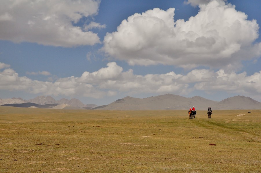 Le lac de Song Kul est grand, pour en faire le tour, il doit falloir parcourir au moins 90 km ! Au kirghizstan tout est plus grand qu’il n’y parait ! Des randonnées à cheval ou à pied, permettent d’en faire le tour en plusieurs jours.